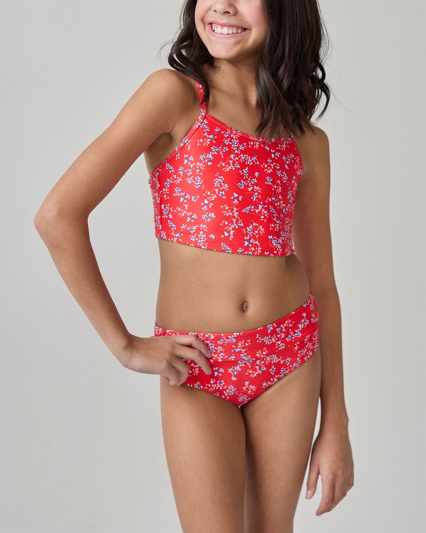 Crafted from high-quality, soft fabric, this set is both durable and lightweight, perfect for a day of fun at the beach or pool. The matching bottoms offer just the right amount of coverage, ensuring she feels confident while splashing around. Perfect fit for Kids and Teen girls