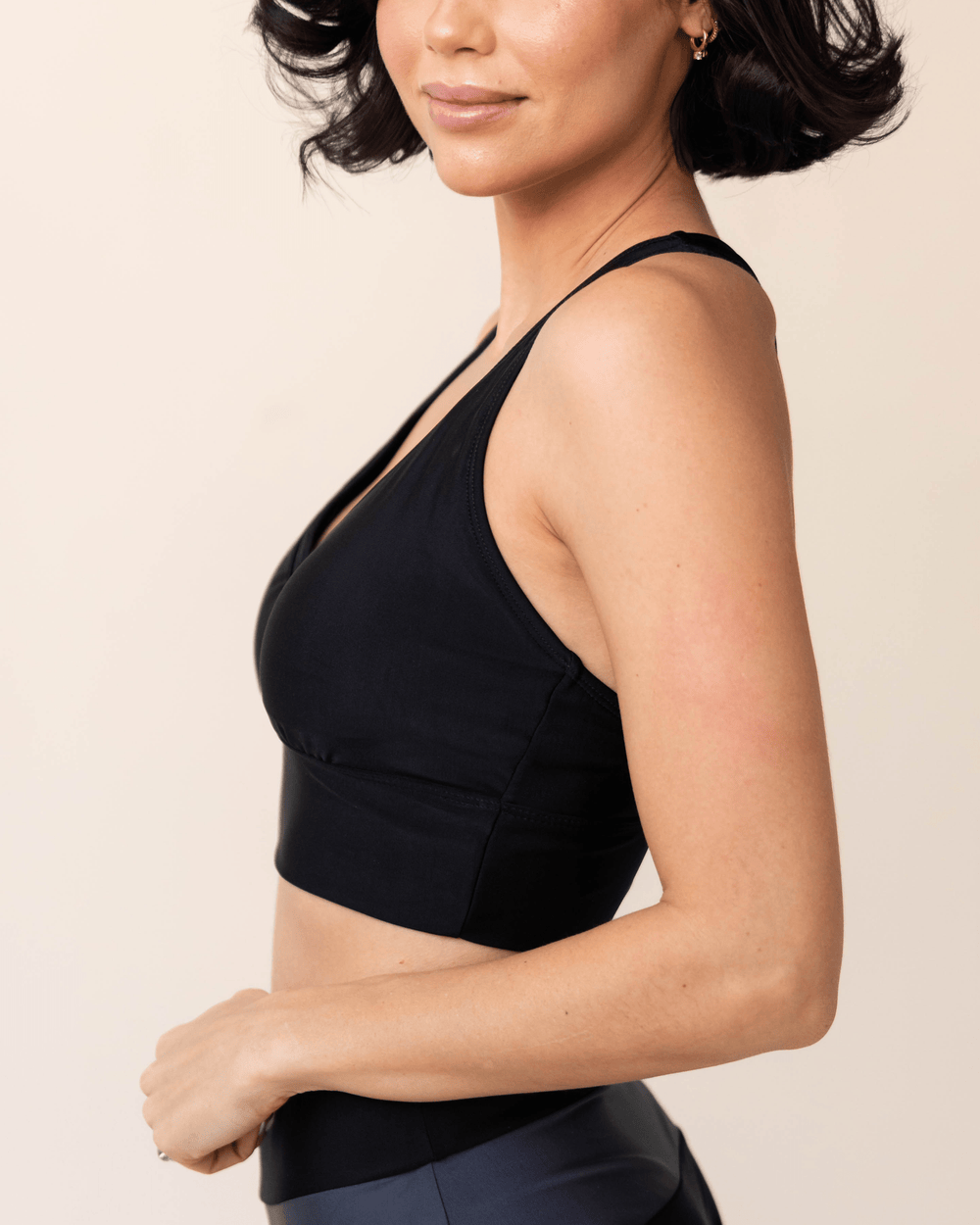The classic black Horizon bottom Is designed to mix + match all of the Oasis Collection. The mid rise fit offers all day comfort with active coverage. Made for movement!