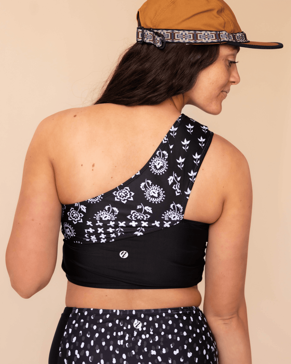 Looking for something NEW and DIFFERENT? This patchwork design is just what you have been waiting for! The one-shoulder, flattering fit keeps you covered and secure while showing off your style as you confidently dive into all your outdoor activities.