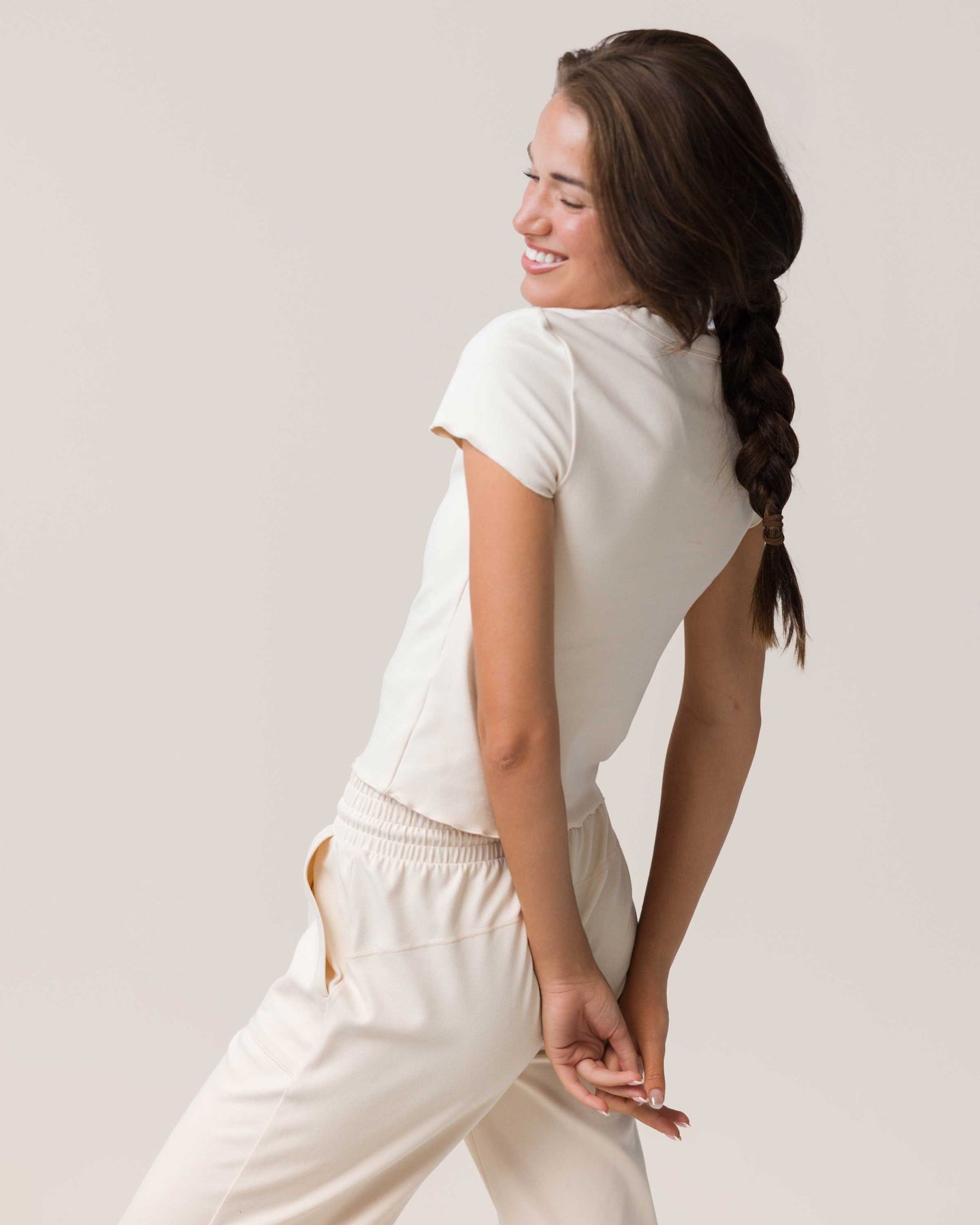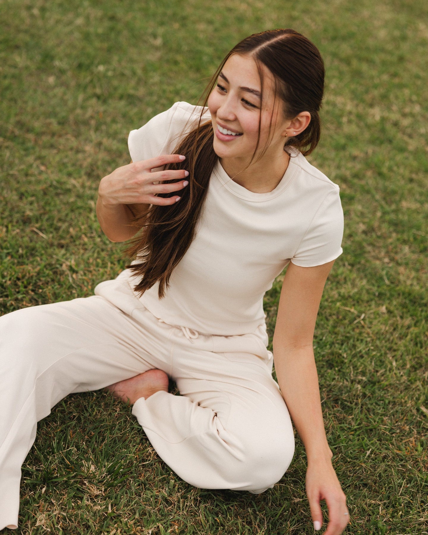 Soft, simple, and endlessly versatile, the Everyday Cloud Tee is the wardrobe essential you’ll wear on repeat. Crafted from buttery-soft, lightweight fabric, it feels incredible against your skin while keeping its shape all day. The classic crew neckline and clean short sleeves make it perfect for layering under jackets, pairing with joggers, or styling with your favorite denim. From travel days to laid back afternoons, this tee is all about effortless comfort with a polished edge.