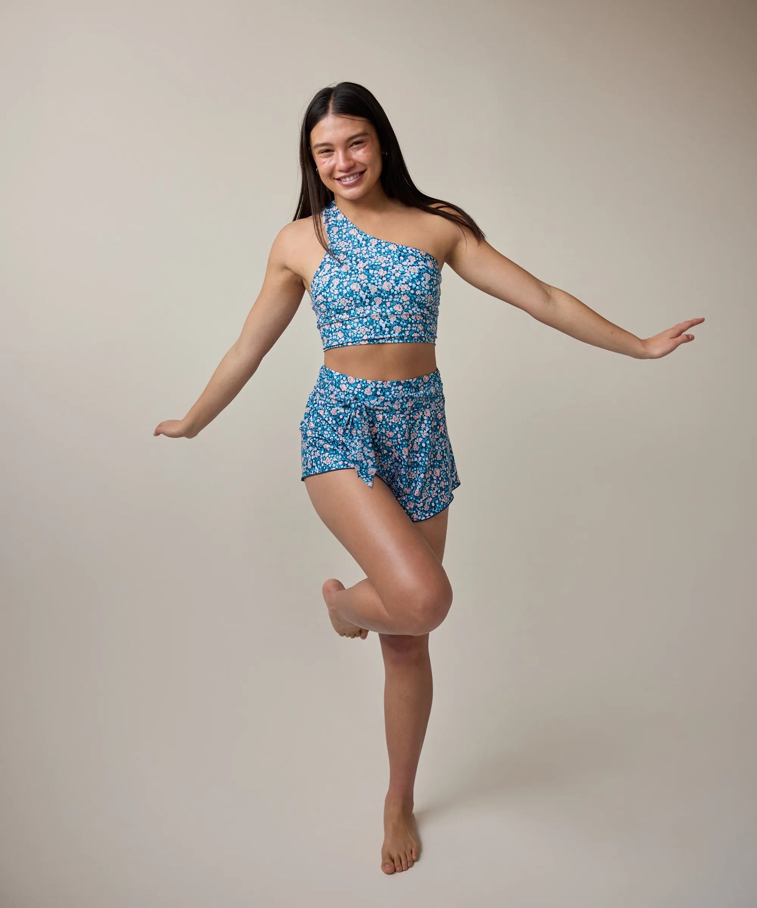 This soft floral romper gives sunshine, spontaneity, and weekend energy all in one piece. Lightweight and breezy, this one-and-done outfit is the throw-on-and-go essential that makes getting ready for your active day feel effortless. The tie-waist detail adds shape without sacrificing comfort, while the relaxed fit keeps you moving with ease.